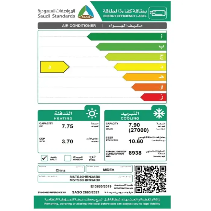 - القدرة الفعلية للتبريد: 27000 وحدة
