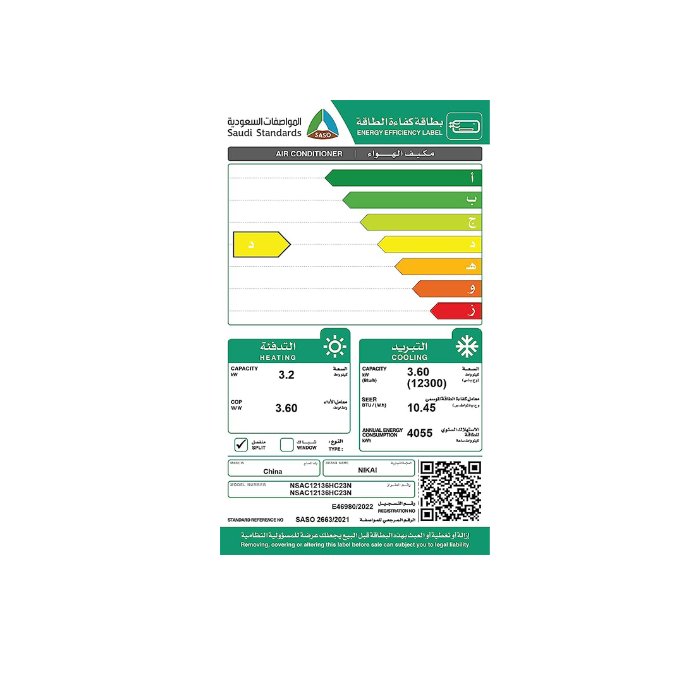مواصفات مكيف اسبليت نيكاي 12300 وحدة – حار/بارد