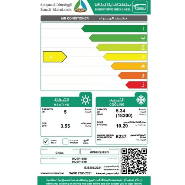 مواصفات مكيف اسبليت هوم كوين برو 18200 وحدة – حار / بارد