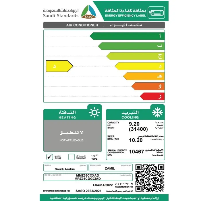 الزامل مكيف سبلت 31400 وحدة ابيض – بارد/حار MRZ36CDGHIAD