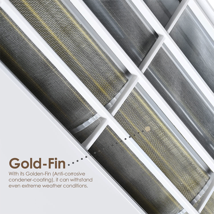 - يحتوي المكيف على ريش ذهبية مقاومة للتآكل والصدأ