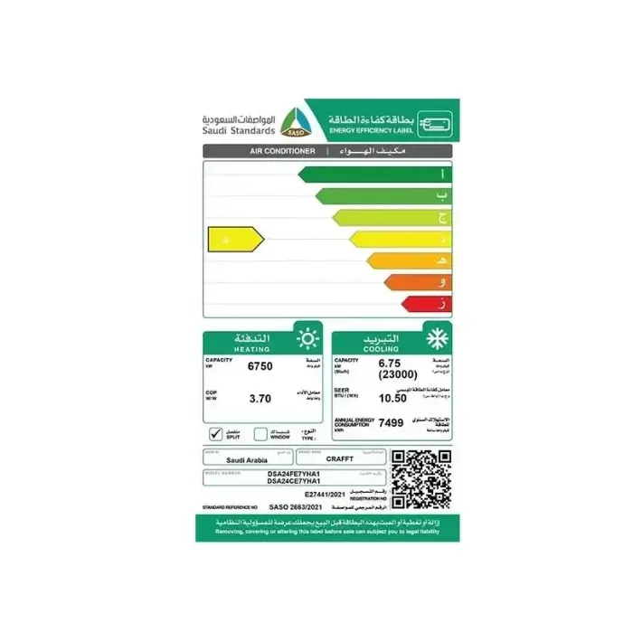 كرافت مكيف سبلت 23000 وحدة وطني – حار/بارد DSA24FE7YHA1/DSA24CE7YHA1