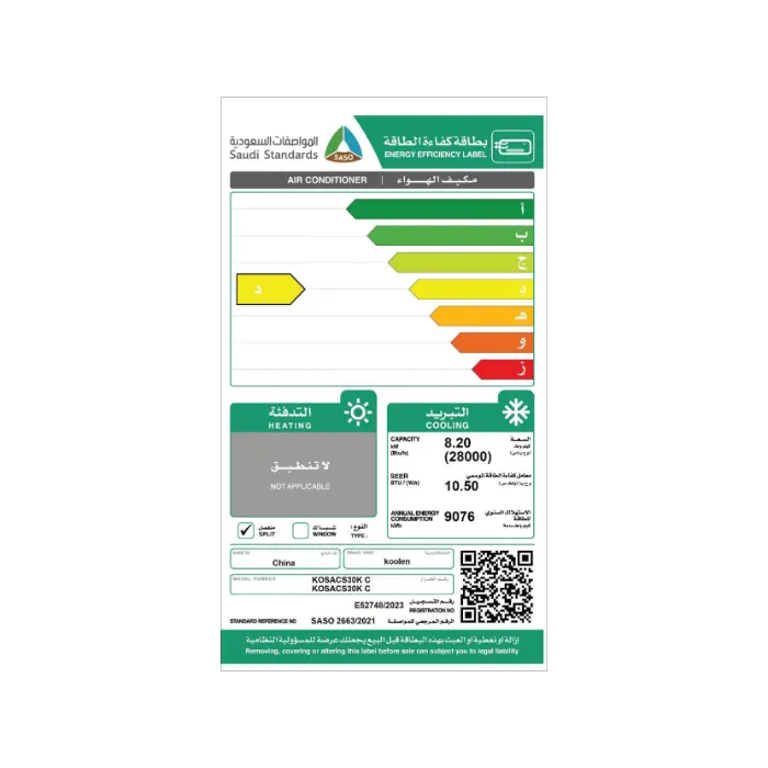 | الصنف | كولن مكيف سبليت 28000 وحدة واي فاي – بارد |