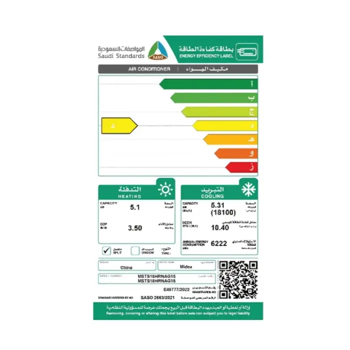 | الصنف | ميديا مكيف سبليت سوبر كول 18100 وحدة – حار/بارد |