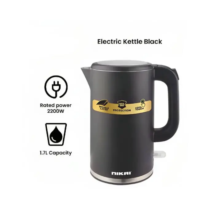 نيكاي غلاية كهربائية 1.8 لتر طبقة مزدوجة – أسود NK820T1