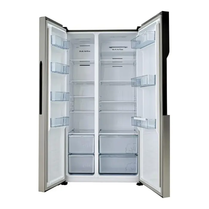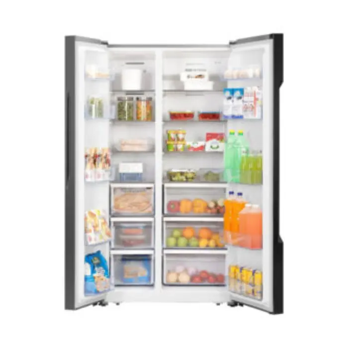 تمتلك هاس ثلاجة دولابي بسعة تخزين ضخمة تبلغ 509 لتر وهي سعة مثالية لتلبية احتياجات العائلات الكبيرة أو لمن يبحثون عن مساحة تخزين إضافية لحفظ جميع أنواع الأطعمة والمشروبات وتتميز الثلاجة بتصميم داخلي مدروس يشمل أرففًا متعددة قابلة للتعديل ودرجًا مخصصًا لحفظ الخضروات والفواكه مما يسهل تنظيم المحتويات والوصول إليها بسهولة كما يساعد هذا التصميم العملي على استغلال كل جزء من المساحة الداخلية بكفاءة عالية ليبقى كل شيء مرتبًا ومحفوظًا في درجة حرارة مناسبة لأطول فترة ممكنة.