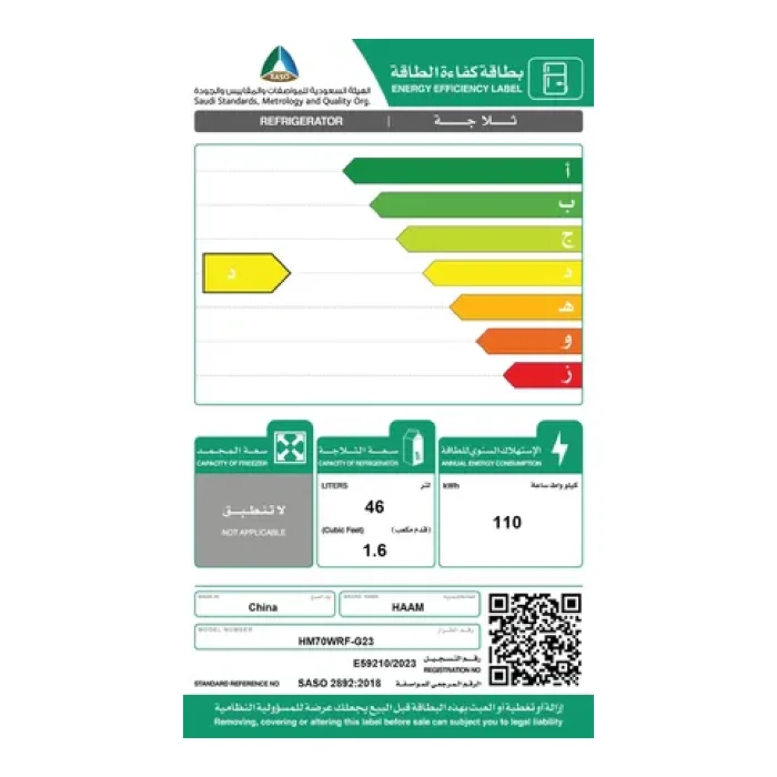 | فئة كفاءة الطاقة | D |