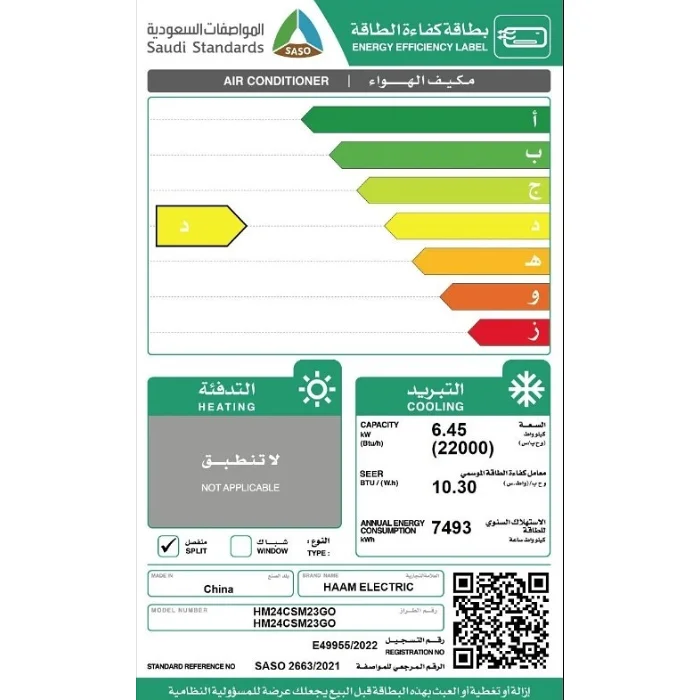 | الصنف | هام مكيف اسبليت الذهبي 22000 وحدة بارد _ ابيض |