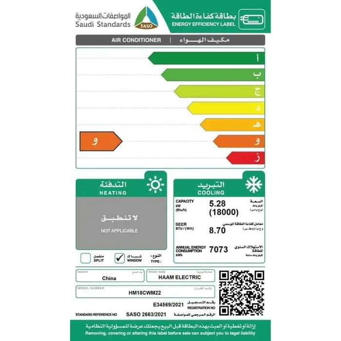 | الصنف | هام مكيف شباك 18000 وحدة – بارد |