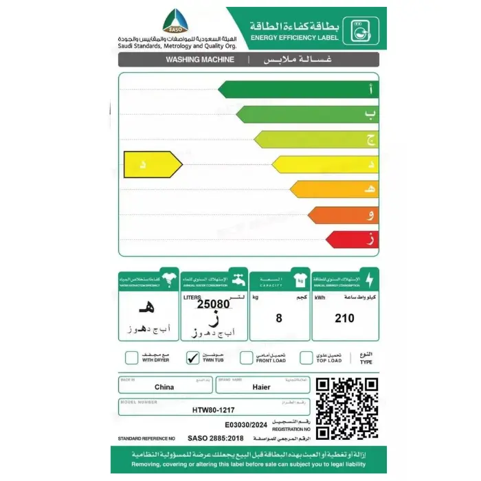 تتميز هاير غسالة حوضين بأنها موفرة للكهرباء مع تقديم تنظيف قوي وفعال، حيث تم تصميمها لتقليل استهلاك الطاقة دون التأثير على جودة الغسيل. تتيح لك هذه الكفاءة الحصول على ملابس نظيفة تمامًا مع الحفاظ على فواتير الكهرباء منخفضة، مما يجعلها خيارًا اقتصاديًا وعمليًا للاستخدام اليومي. الجمع بين الأداء القوي والحفاظ على الطاقة يجعل الغسالة مثالية للعائلات التي تبحث عن تنظيف فعال ومستدام في نفس الوقت.