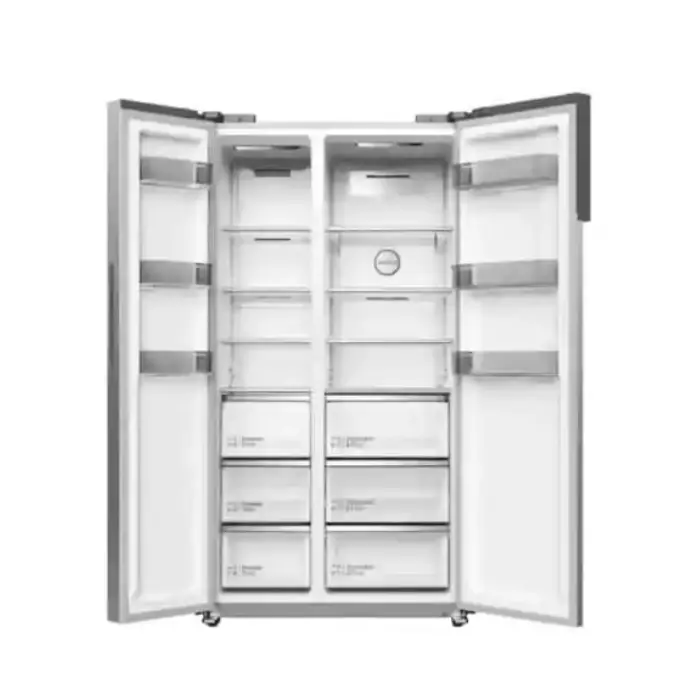 هيتاشى ثلاجة دولاب تتميز بسعة كبيرة تصل إلى 525 لترًا مما يجعلها مثالية للعائلات الكبيرة أو الاستخدامات التجارية تتوزع هذه السعة بين 333 لترًا لحجرة الثلاجة و192 لترًا لحجرة المجمد مما يوفر مساحة واسعة لتنظيم وتخزين كميات كبيرة من الطعام والمشروبات تتميز الثلاجة بتقنيات متقدمة مثل ضاغط الإنفرتر الموفر للطاقة ونظام التبريد بالهواء المحيطي مما يساهم في الحفاظ على الطعام طازجًا لفترة أطول تصميمها الأنيق باللون الفضي يضيف لمسة جمالية للمطبخ.