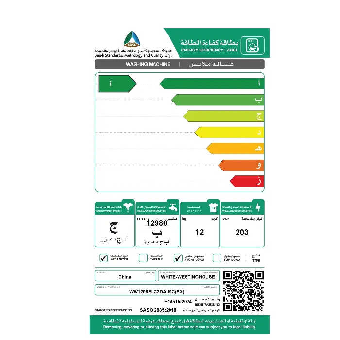 الوسوم: غسالة تعبئة أمامية, وايت وستجهاوس غسالة 12 كيلو, وايت وستجهاوس غسالة تعبئة أمامية