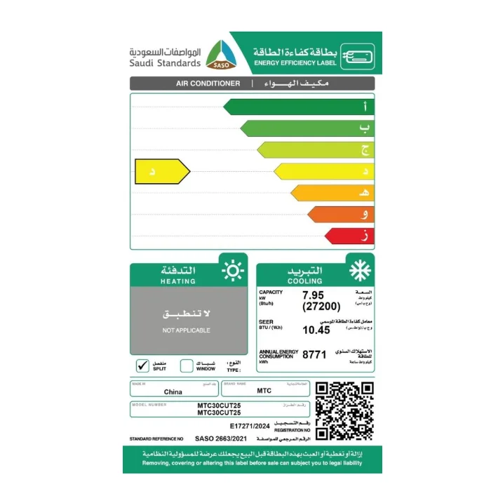 MTC مكيف سبليت 27200 وحدة – بارد توزيع رباعي MTC30CUT25